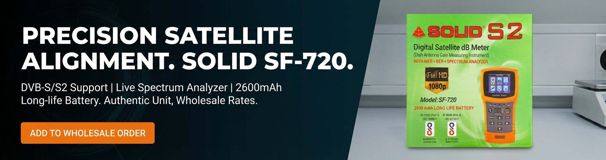 Best Satellite Meter kaunsa hai? We review Solid SF-720, SF-630 & Yuri. Find the best DTH setting machine at wholesale prices from Garima Electronics.